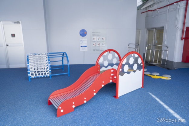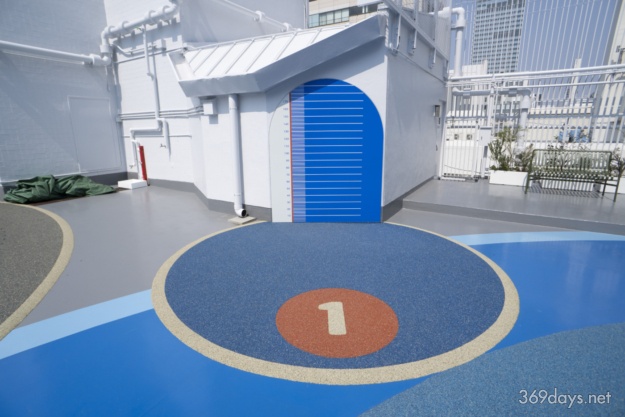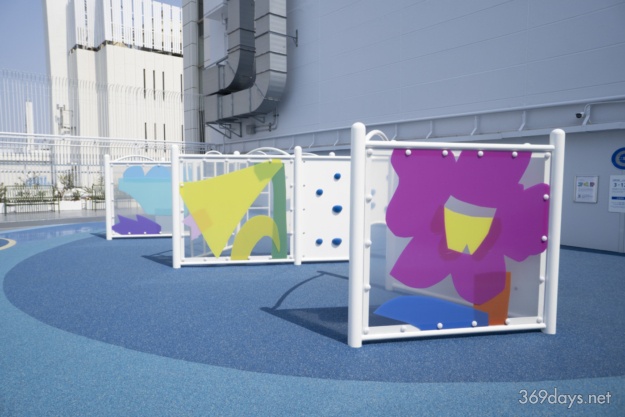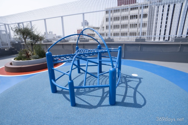 こちらがリニューアル後の屋上遊園地の様子。新しい遊具が設置され、以前からある遊具もピカピカに。床は怪我をしないよう柔らかく、ブルーが基調の爽やかな色になりました。