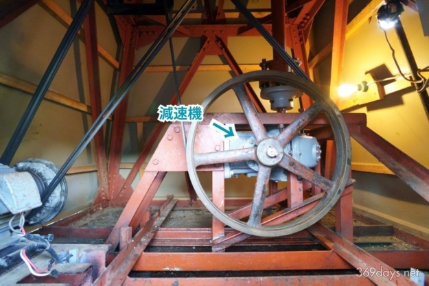 新しいタイプの減速機は縦向きに設置できるのですが、これは古いタイプの減速機なので開園当初のまま横向きで設置されています。横向きで設置されているのは今ではとても珍しいので、メンテナンスを担当されている方も慎重に対応してくださっています。点検する時は何度も動作確認をしてからメリーゴーランドの中にセットして、油漏れなどが無いようにしてくださっています。