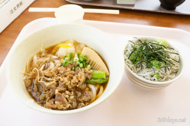 こちらは春野菜と牛肉のおうどんと、遠州灘産しらす丼のセット。お肉も野菜もしらすもたっぷりで大満足です!
