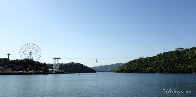 遊園地を眺めながら湖上を渡るのは最高に気持ちいいですよ!