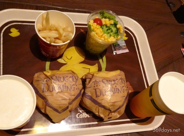 いただいたメニューはこちら!ダックリングドリームチーズバーガーのポテトセットとサラダセットです。