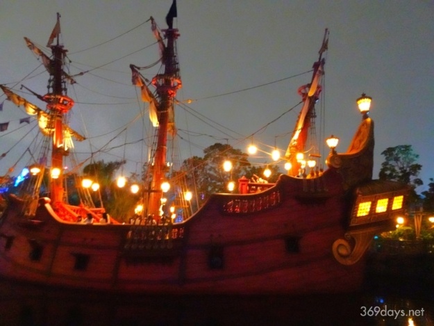 アトラクションの外にはフック船長の船「ジョリー・ロジャー号」も。