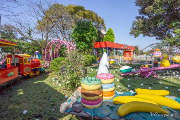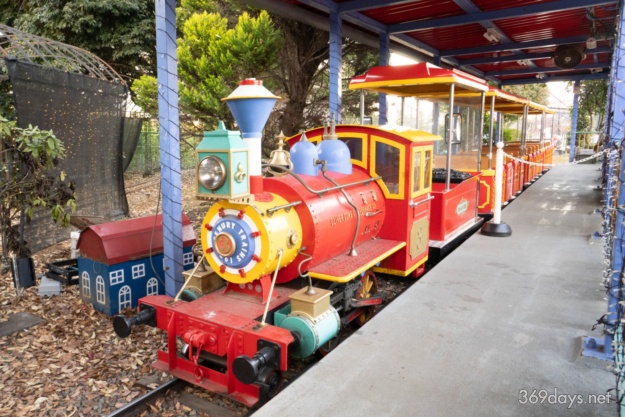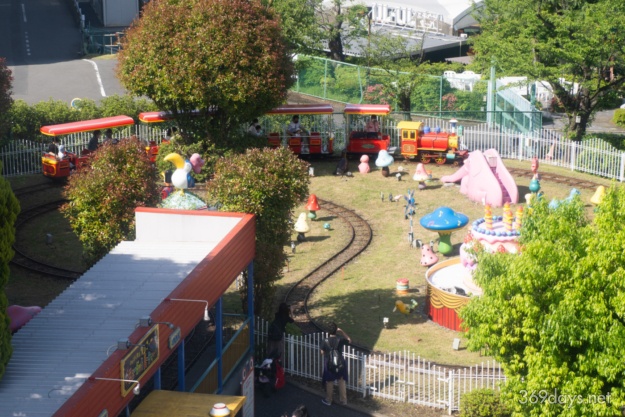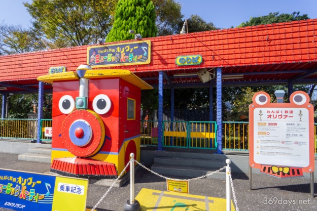 ツイン観覧車の間に位置する「わんぱく鉄道オリヴァー」。