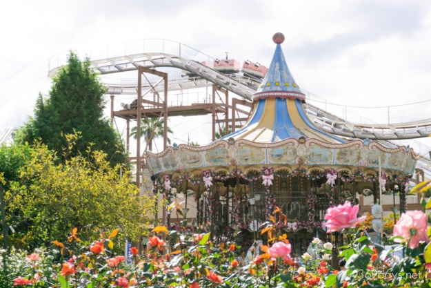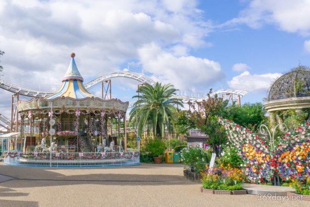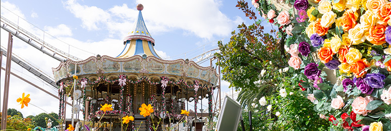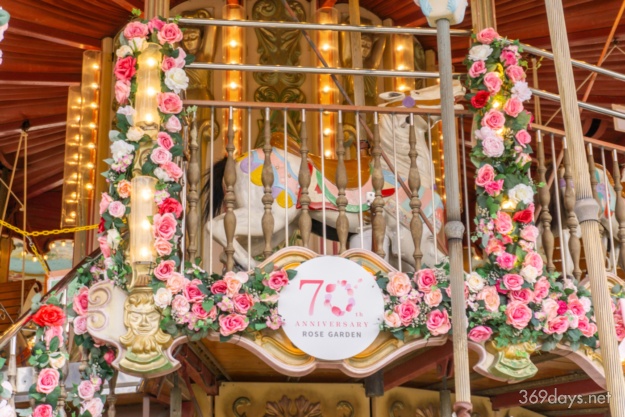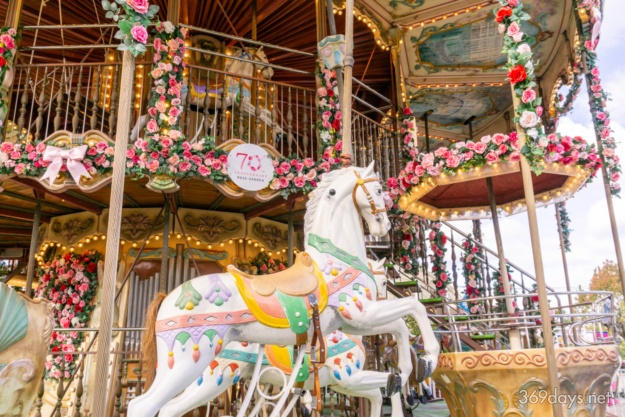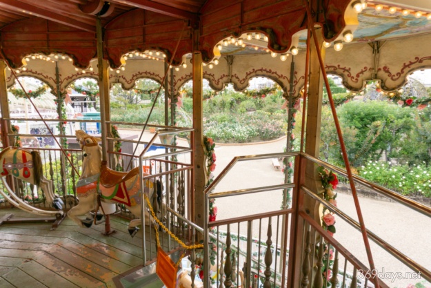 飾りだけでなく、メリーゴーラウンドからの眺めにも注目です。メリーゴーラウンドはローズガーデンのすぐ隣にあるため、本物のバラが咲く様子を眺めながらメリーゴーラウンドに乗ることができるんです。