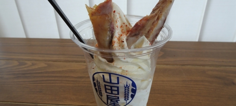 ソフトクリームの甘さに救われつつも、ソフトクリームにはくさやの臭いが少し乗り移っています。